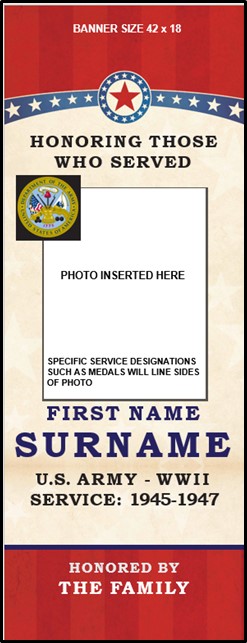 The banners are $100 each and will cover production costs and a donation to a military focused organization. This year, the donation will be made to the American Legion Auxiliary Ryan Larson Post #65.